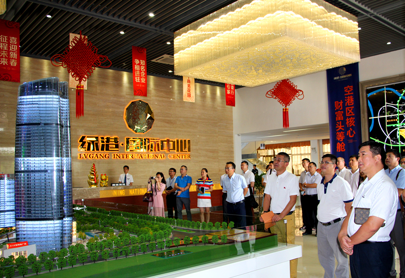 此次活动分为两个行程,在党委书记、董事长、总经理杨东的带领下,一行人员首先来到绿港国际中心售楼部进行参观。通过观看项目沙盘和商业宣传片,参观人员对经开区的区位优势、产业特点、政策优惠等有了较为深入的了解,同时也对绿港•国际中心项目及多宝官网建设的其他厂房项目产生了浓厚的兴趣和合作意向。