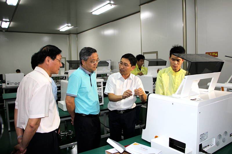 周红波市长(中)视察位于绿港国际中心B4栋的广西华银医学检验所,与企业负责人亲切交谈
