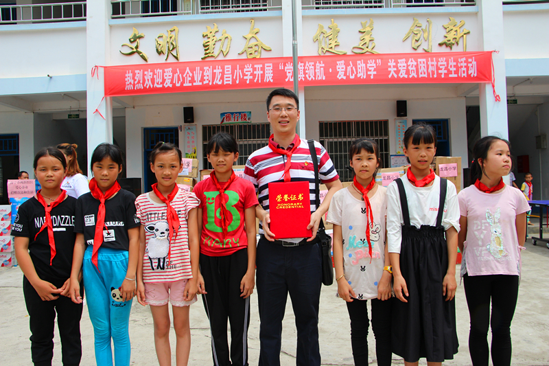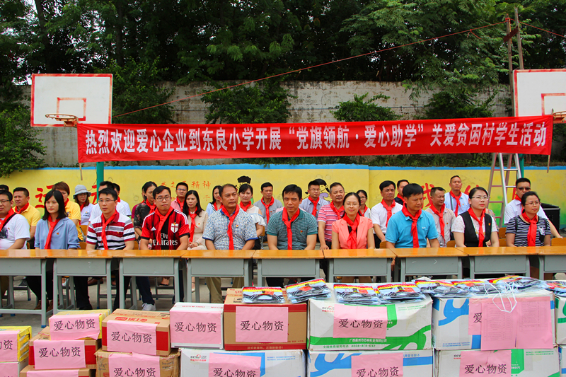 5月31日,“六一”国际儿童节前夕,由南宁市委组织部、市两新组织党工委协调经开区、高新区两新组织党工委主办的“党旗领航·爱心助学”关爱贫困村学生活动在马山县百龙滩镇龙昌小学和乔利乡东良小学举行,多宝官网党委积极加入此次爱心助学行列。当天,多宝官网党委连同经开区、高新区两新组织党组织及个人、企业一起,共同为龙昌小学、东良小学640名学生捐赠了校服1200套、文具700套,以及运动器械、户外移动音箱以及饮料、食品等爱心物资一批,价值约15.8万元。