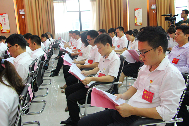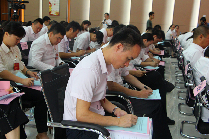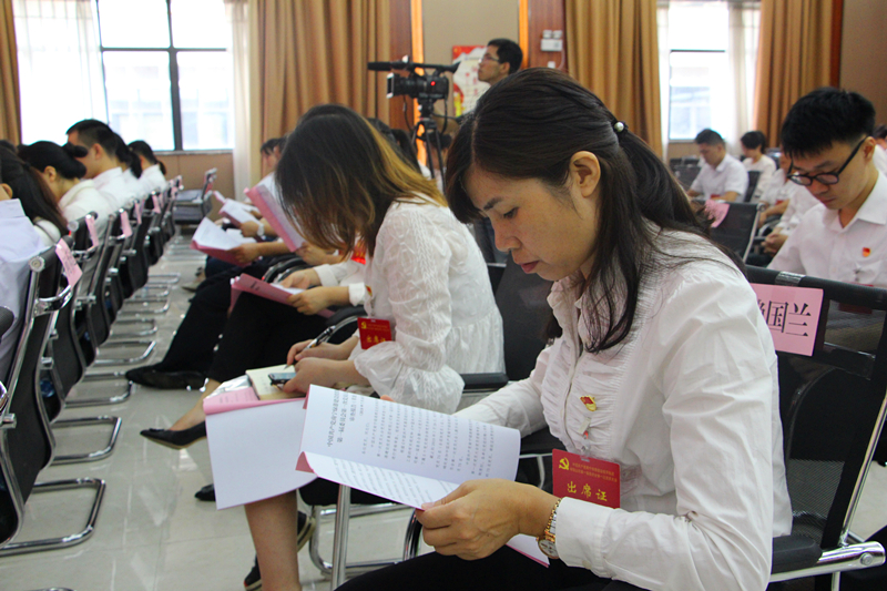 与会党员们认真听取工作报告2