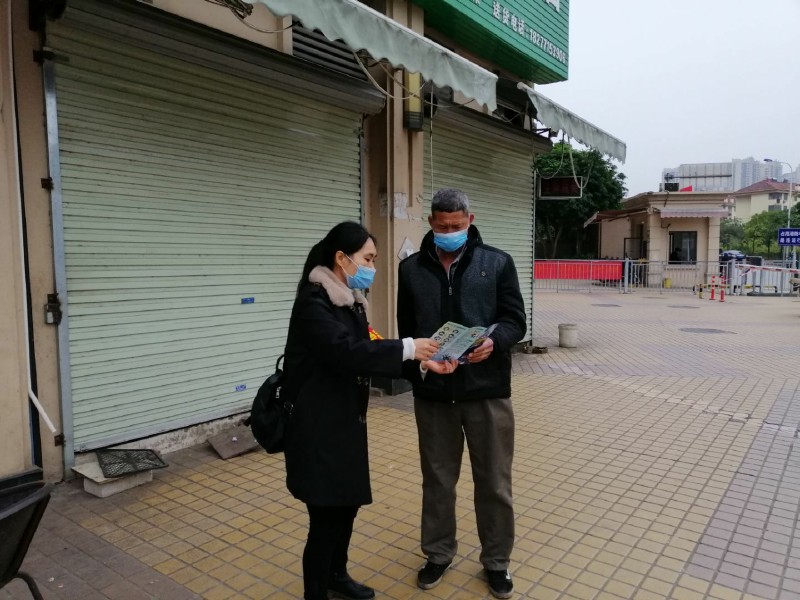 社区网格员正在和居民讲解防控知识