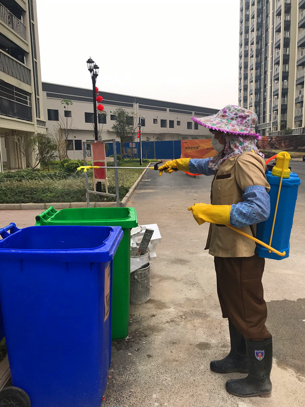 万方物业公司正在对园区进行消毒消杀