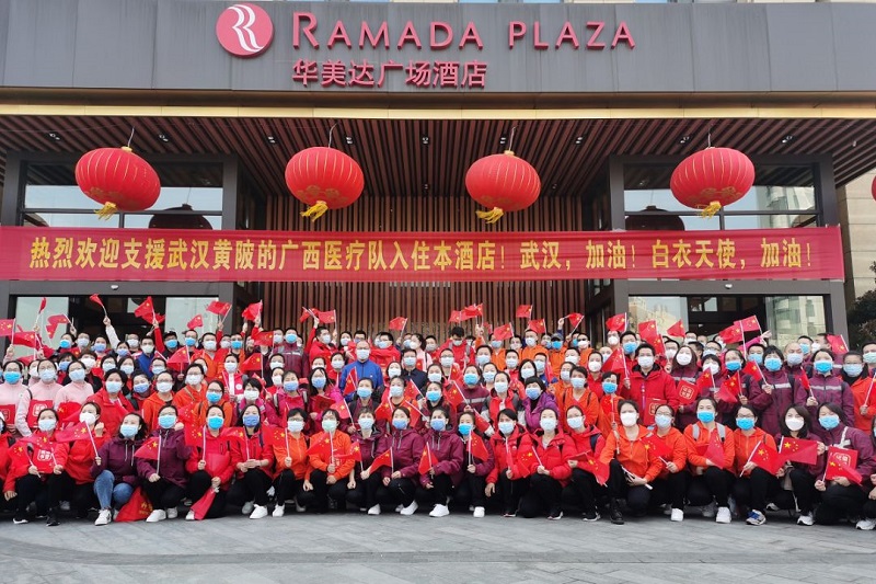 对入驻酒店的广西医疗队医护人员终身免费。
