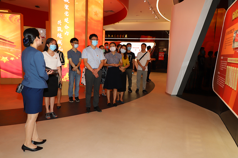 党建文化示范中心讲解员向多宝官网考察团讲解党建品牌的特色打造