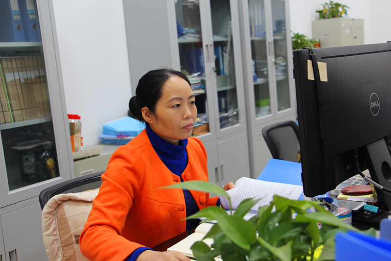 刘小英在认真地做成本测算工作
