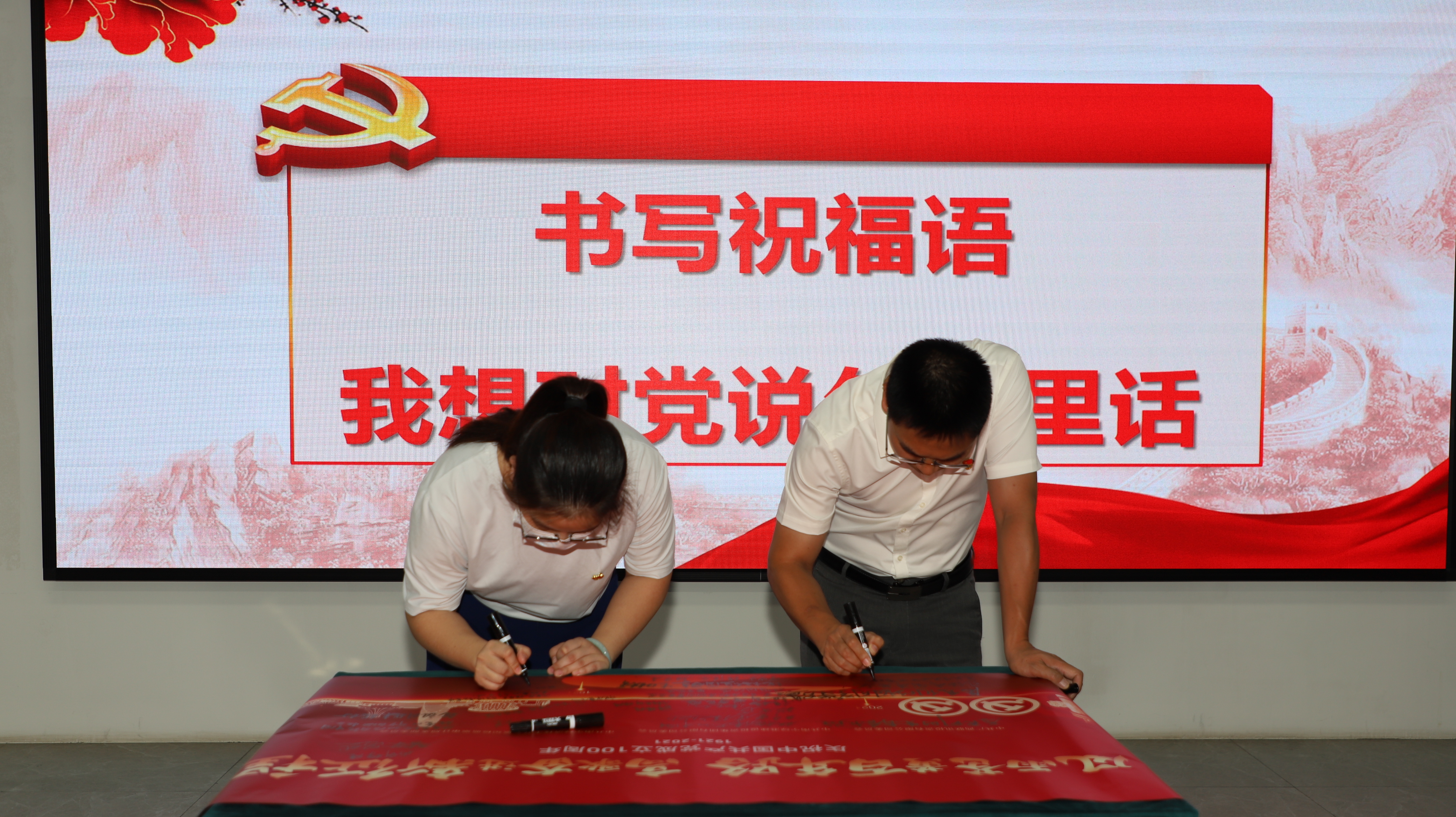 党员们依次上台书写对党的祝福