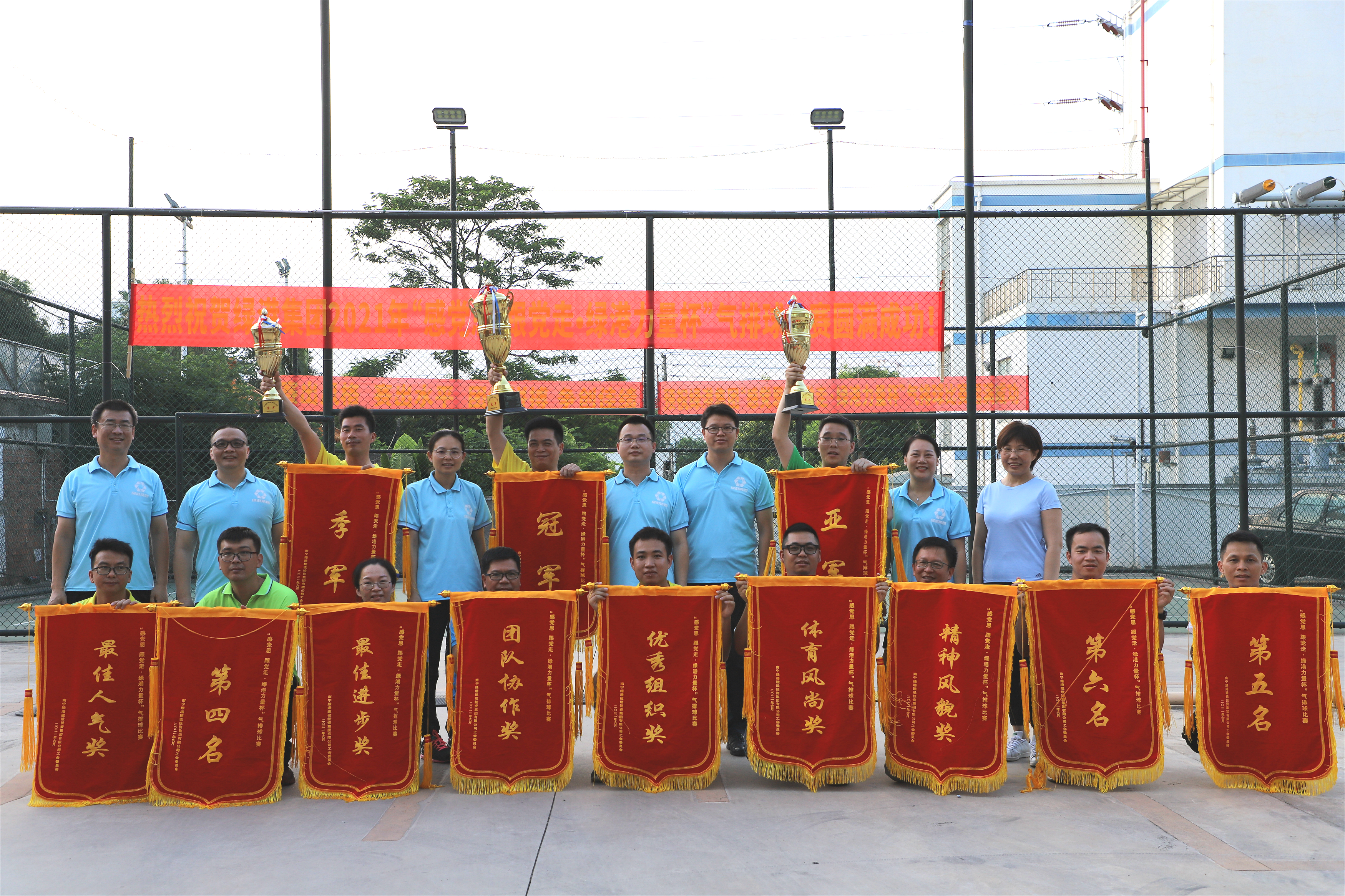 7月13日,在一阵阵热烈的加油呐喊声中,多宝官网2021年“感党恩 跟党走·绿港力量杯”气排球比赛决赛圆满落幕。集团公司领导班子、12支参赛队伍成员及员工参加闭幕式。