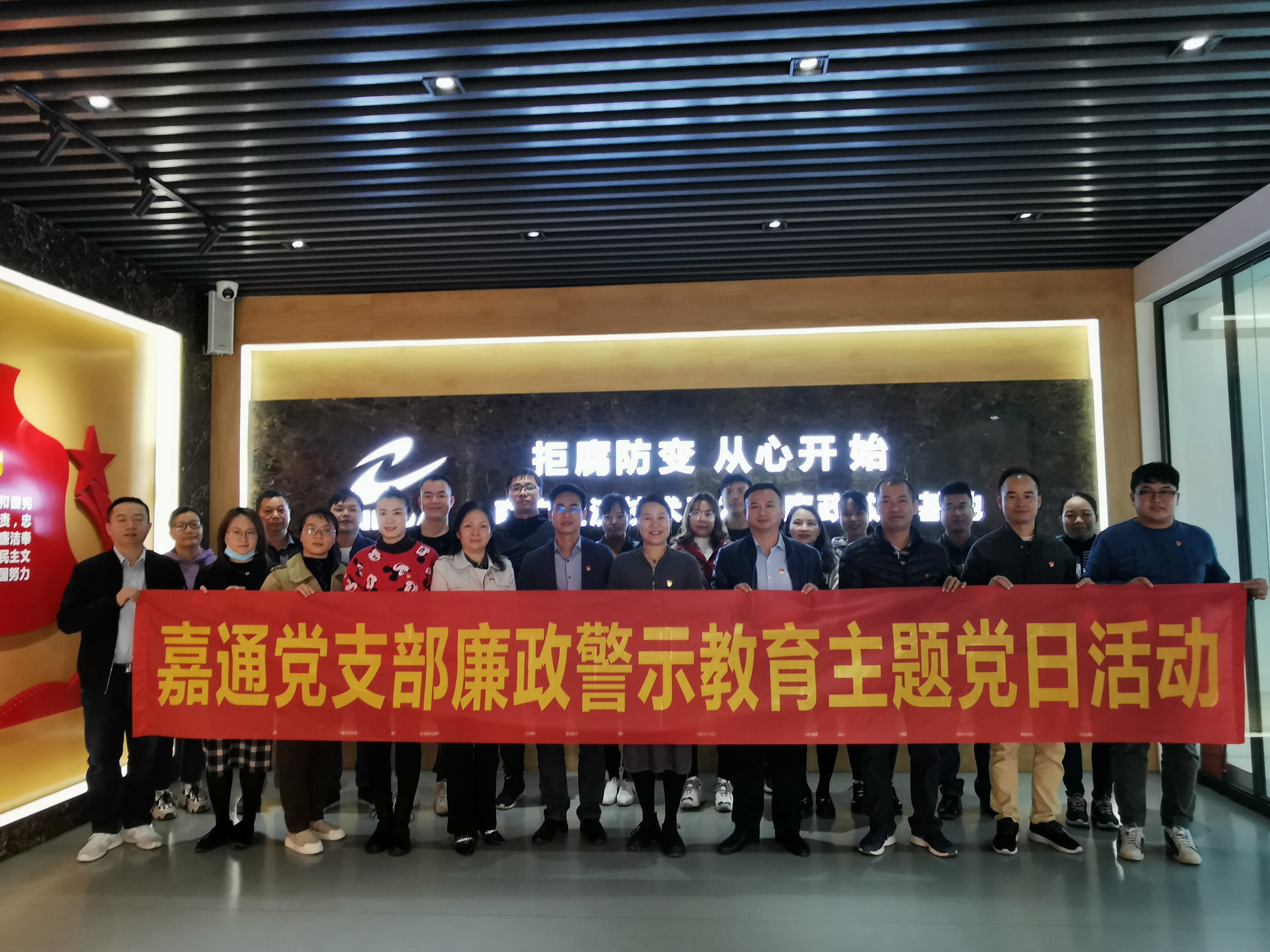 12月3日,嘉通公司党支部组织全体党员、积极分子到南宁经济技术开发区廉政教育基地开展廉政警示教育主题党日活动,并开展党史、十九届六中全会知识竞赛活动。通过参观廉政基地引导党员干部以勤廉奉献者为榜样,以贪腐堕落者为警示,做到“警钟长鸣,引以为戒”通过竞答活动进一步推动支部党史学习教育走深走实,有效促进党的十九届六中全会精神入脑入心,达到以赛促学的目的。