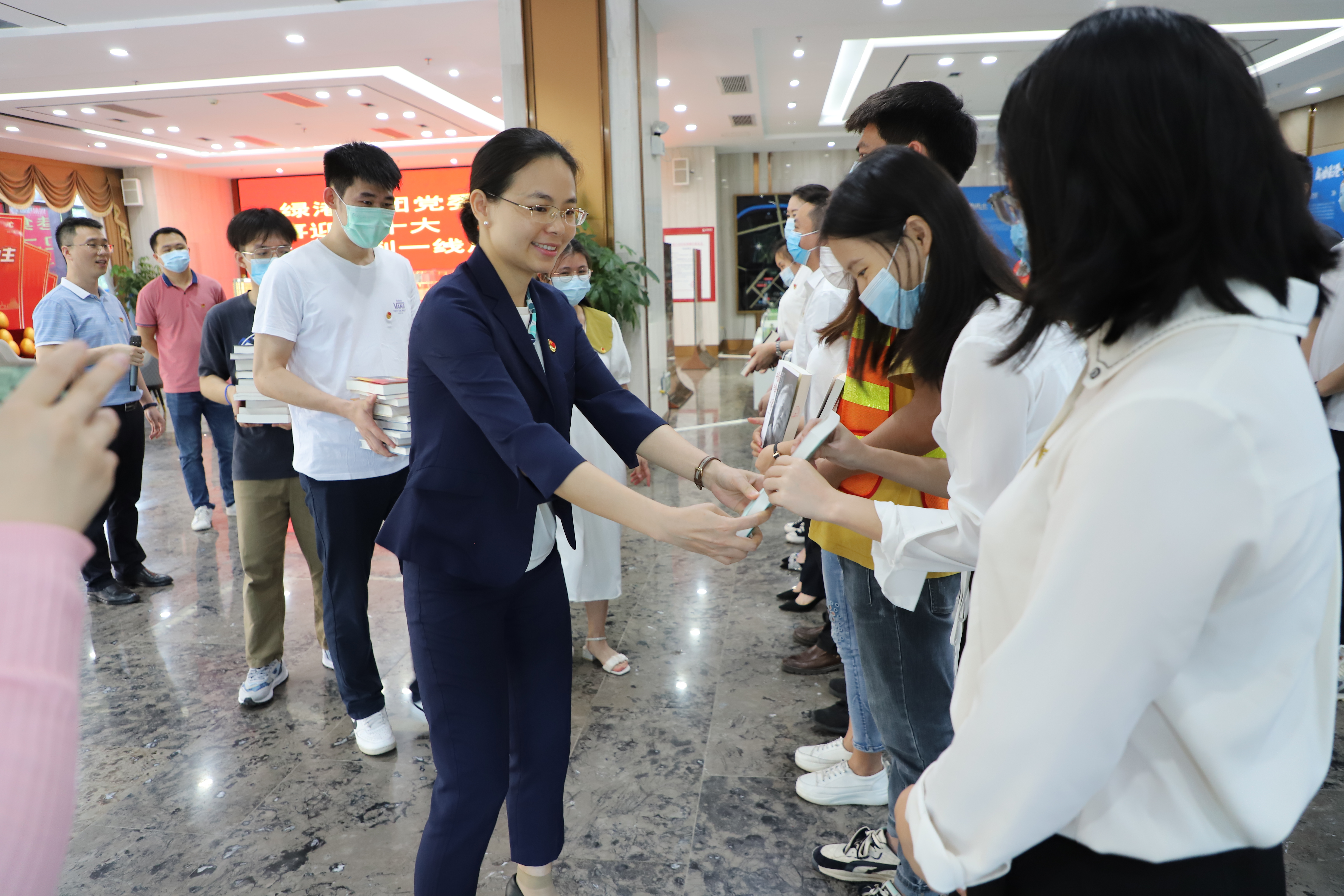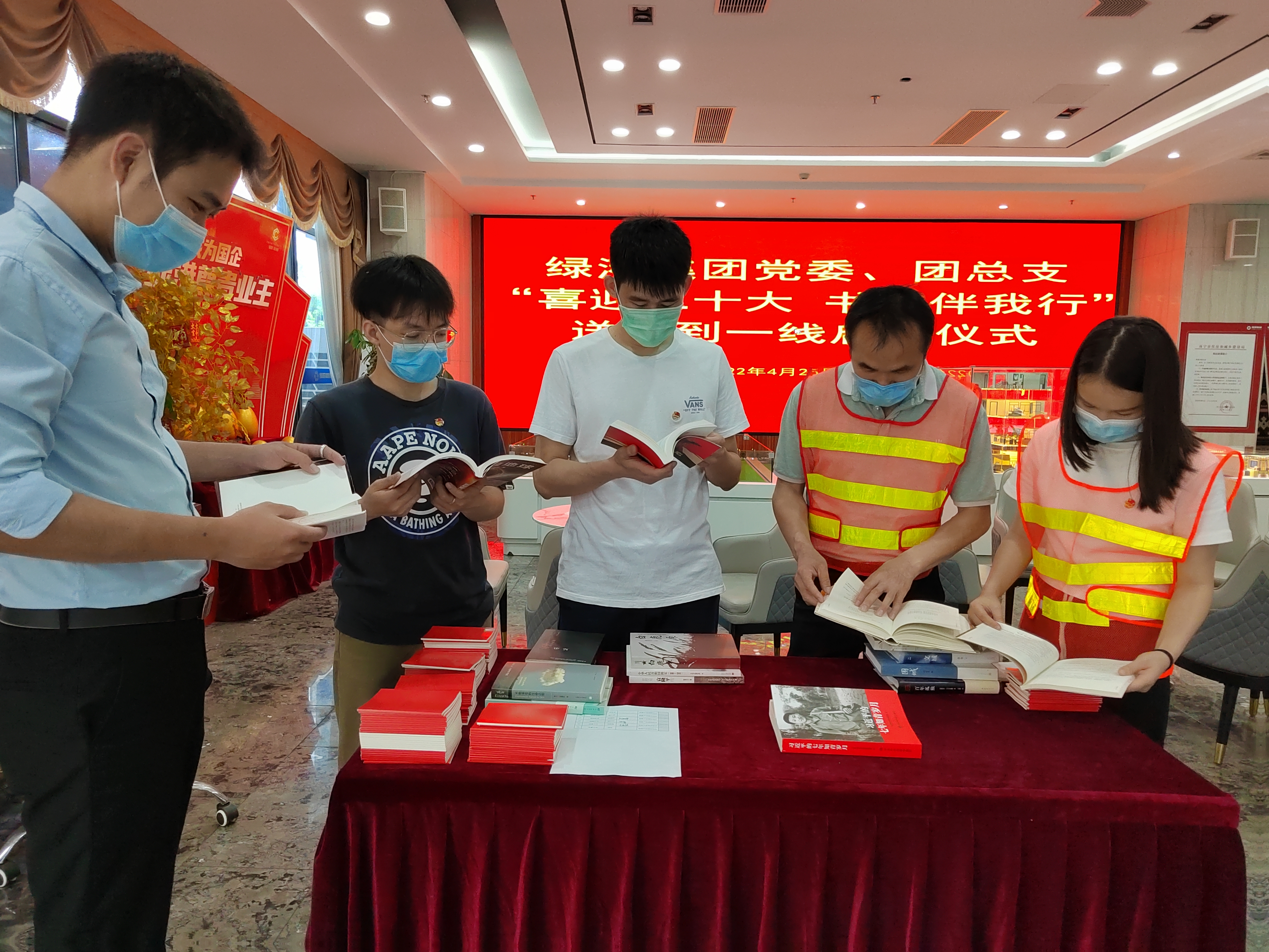 在第27个世界读书日暨首届全民阅读大会举办之际,为营造浓厚的读书氛围,多宝官网党委、团总支以“喜迎二十大 书香伴我行”为主题,组织党员代表及青年团员开展送书到项目一线的读书活动。