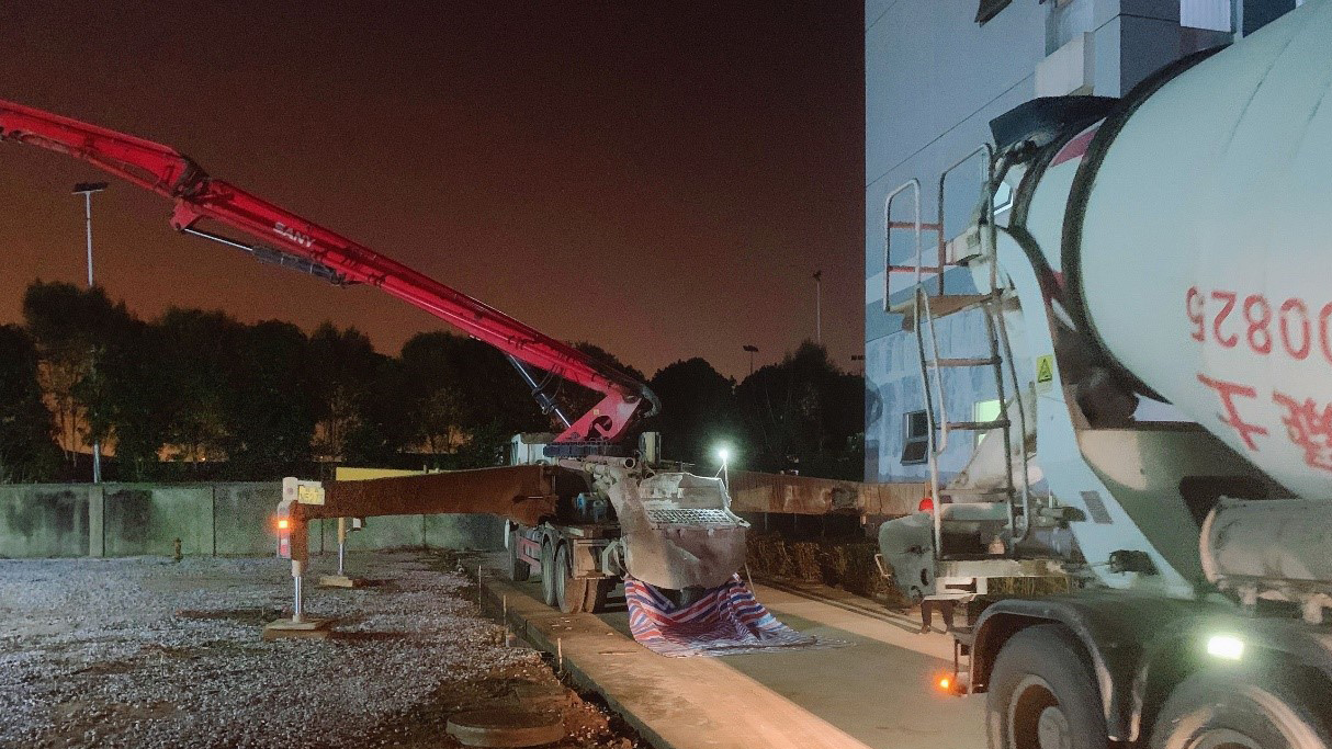 第一罐混凝土开始浇筑