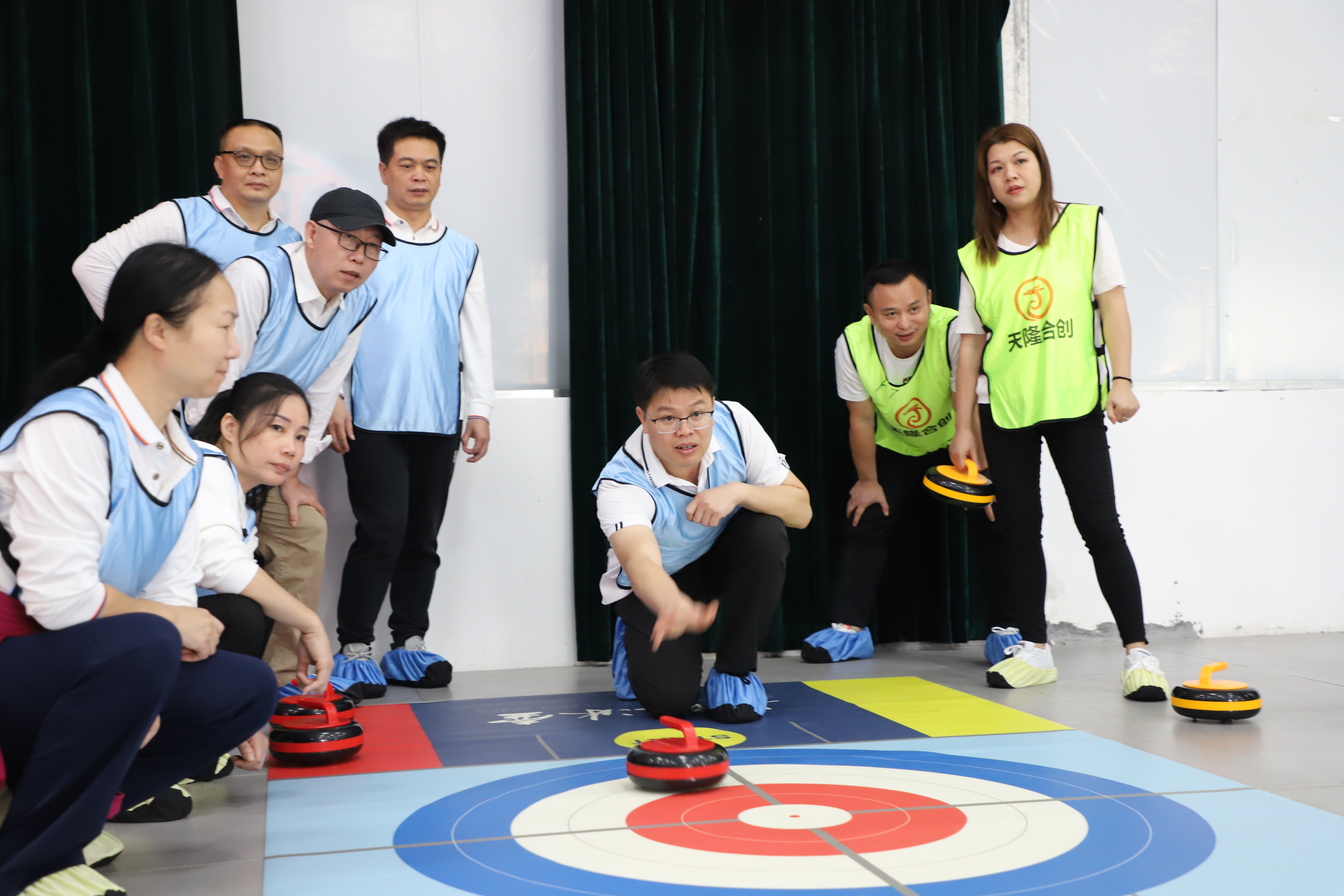 当天下午,参训人员分成六个小分队开展了冰壶素质拓展比赛。手握把手、单膝触地、精准一推……比赛现场,选手们全神贯注,和队友商讨战术、默契配合,大家你来我往、斗智斗勇,每一次冰壶相互碰撞都激起一片欢呼声和掌声,充分展现出多宝官网中高层管理着积极向上、奋力拼搏、团结协作的精神风貌。