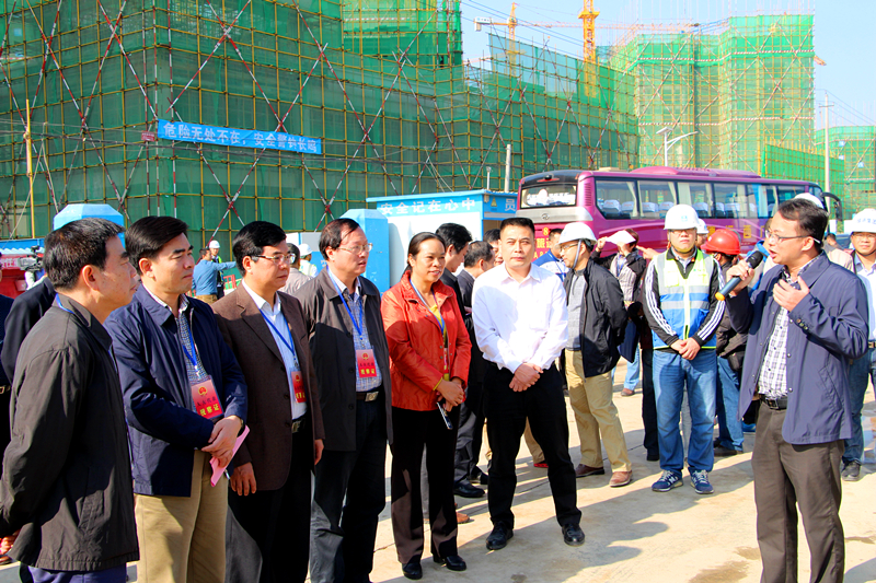 视察组一行在经开区管委会办公区听取管委会全年工作汇报后,首先来到自治区为民办实事棚户区改造项目——新港家园项目现场调研指导工作。多宝官网党委书记、董事长、总经理杨东向人大代表们汇报了新港家园项目建设情况,他说,新港家园作为自治区为民办实事统筹推进的棚户区改造项目,承担着经开区吴圩镇被征地拆迁农民的安置任务,事关空港经济区建设发展的大局。多宝官网作为建设业主,积极贯彻落实自治区、南宁市、经开区相关决策部署,根据“让利于民、统一规划、统一建设”总体开发思路,充分发挥绿港铁军精神,通过创新项目管理模式,抽调精干力量,狠抓工程质量,快速有序的推进项目建设工作。