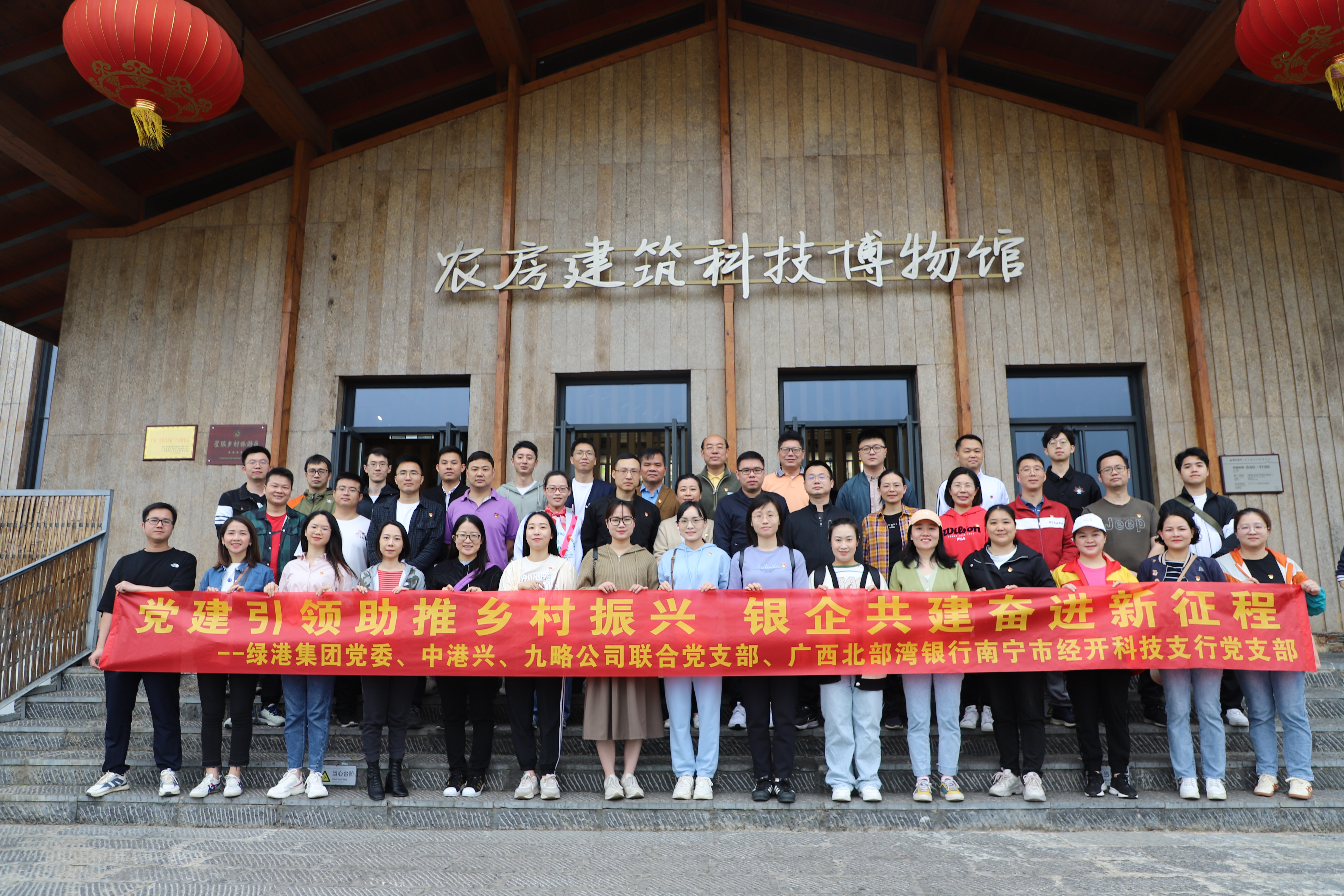 为进一步加深与银行的团结合作,深入贯彻落实党的二十大精神,贯彻执行党的二十大提出的“全面推进乡村振兴 建设宜居宜业和美乡村”部署要求,加强与业务合作单位党组织互学互鉴、共同提高,推动党建工作与生产经营深度融合,促进共同发展。3月18日,多宝官网党委,中港兴、九略公司联合党支部与北部湾银行经开科技支行党支部在南宁市武鸣区南国乡村联合举办“党建引领助推乡村振兴 银企共建奋进新征程”银企共建活动,多宝官网、北部湾银行经开科技支行党支部共45人参加了活动。