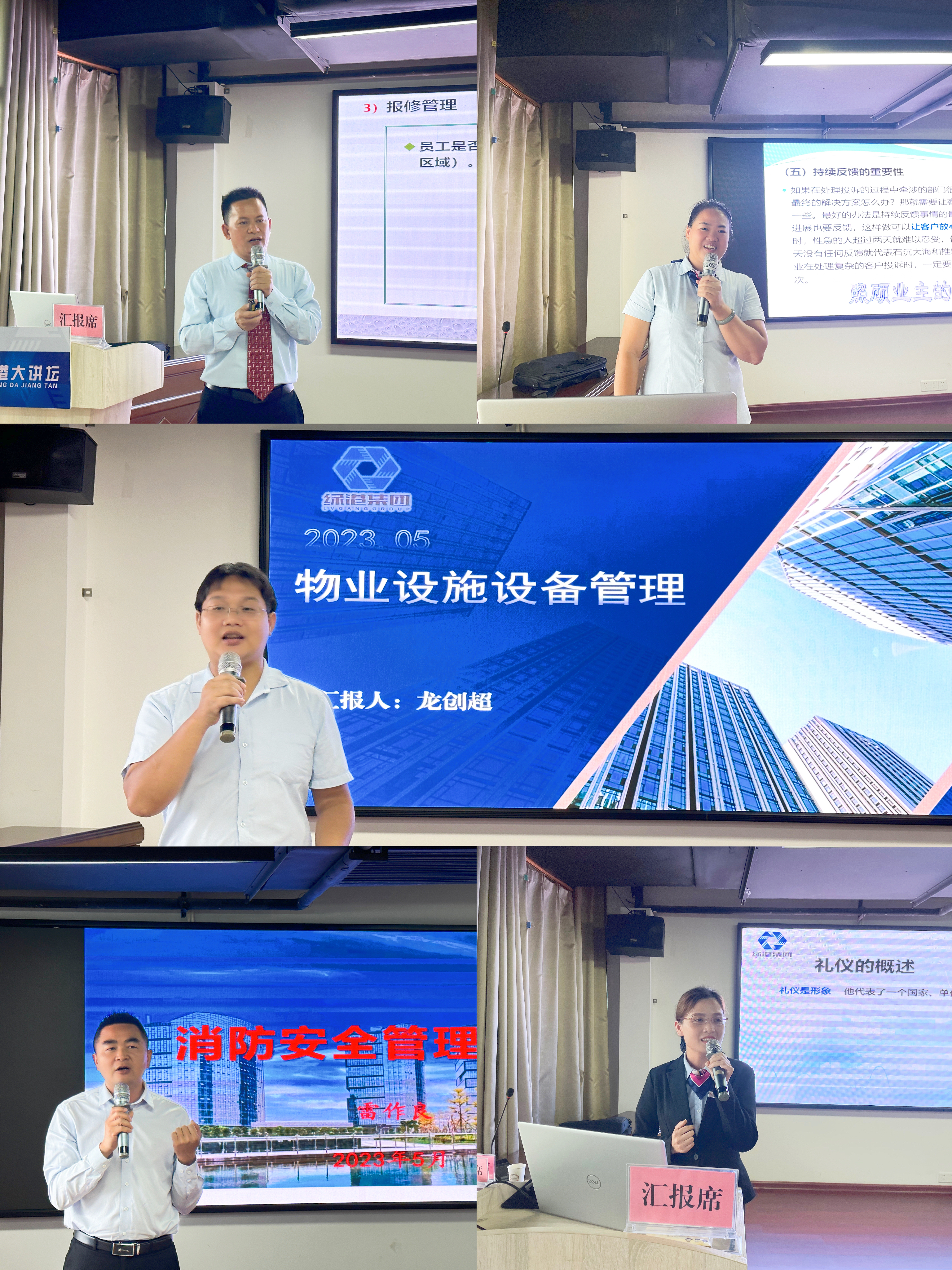 汇报会上,学员们分别结合个人的日常学习体会、感受,对各自在项目管理的所见所闻、所思所想逐一进行整理,从所学习的物业服务意识、催费技巧、服务礼仪、设施设备管理、安全管理等方面制作成PPT并进行了详细的汇报和分享,体会深刻,学习感受颇深,达到了 “一人学习,众人受益,共同提升”的目的,会场掌声不断,大家受益匪浅。来自银凯孵化园物业服务中心的客服经理付正豪获得了汇报会第一名的好成绩,他表示会进一步明晰目标任务,抓好学习成果转化,以学促知、以知促行,为项目日常管理工作提供切实有效的帮助,与同事们一起为公司的健康发展贡献绵薄之力。