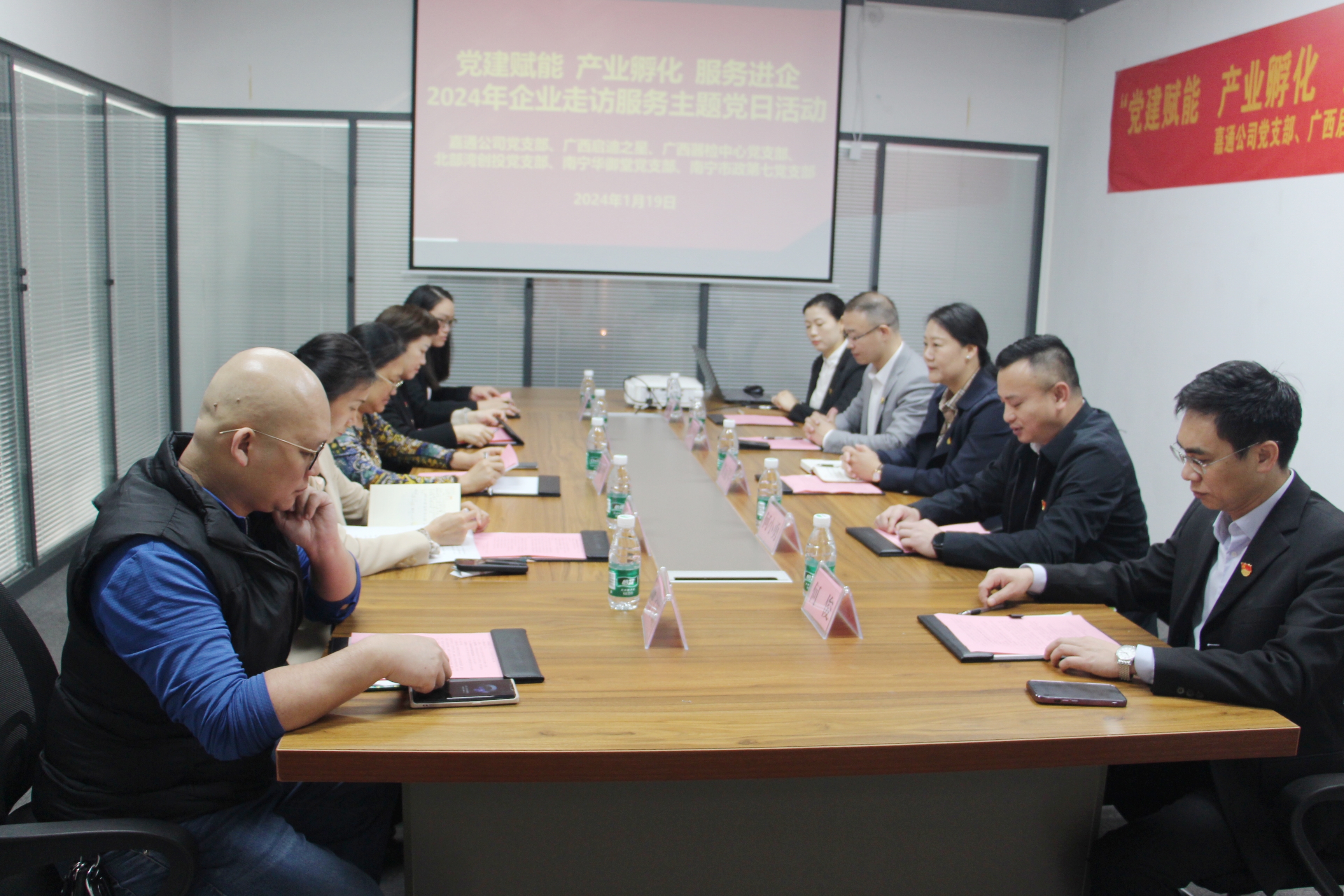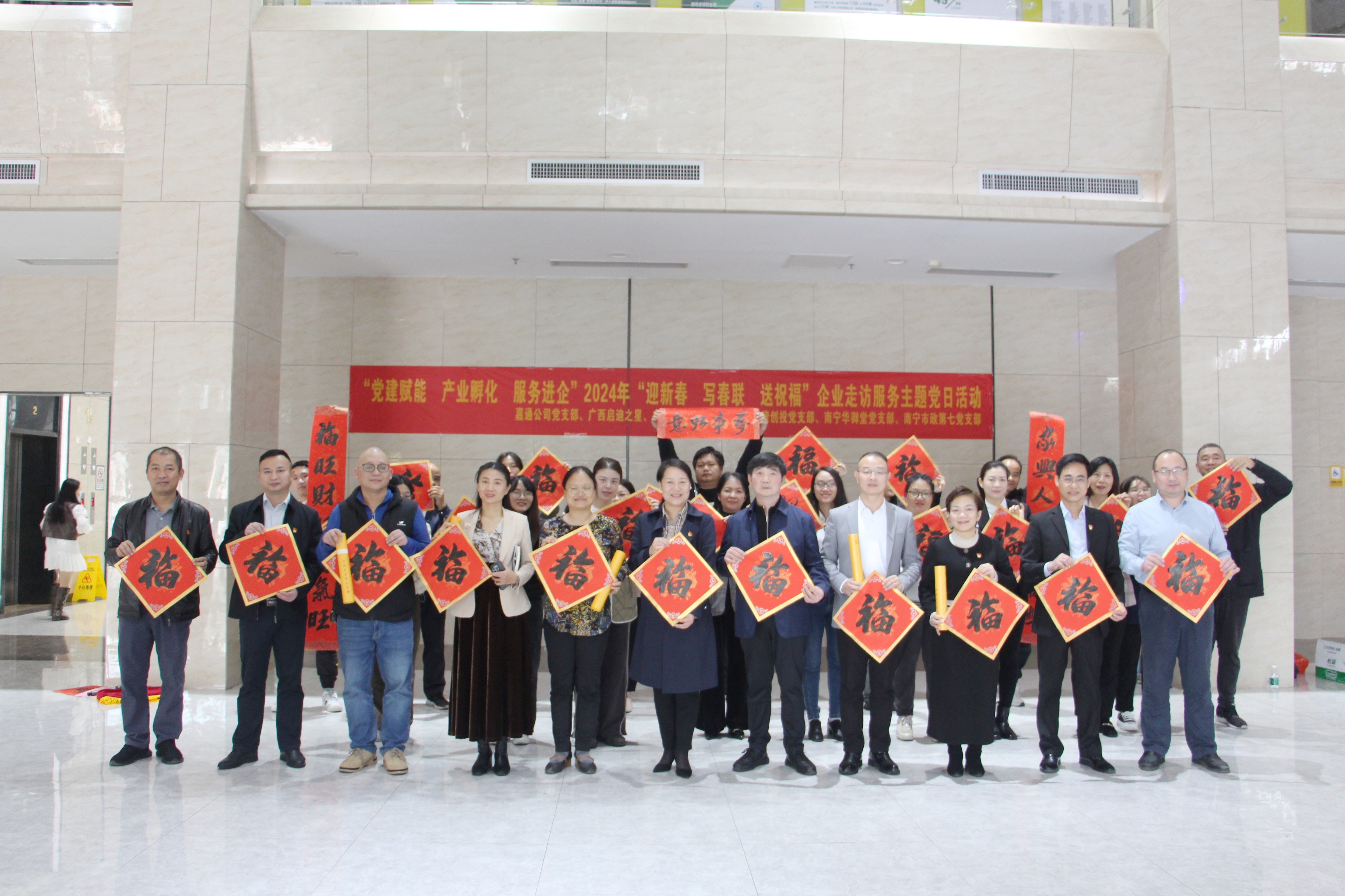 为深化党建与业务融合,通过党建引领提升企业服务质量,发挥好产业经济稳定器功能,以做强“链上党建”推动产业高质量发展,1月19日,嘉通公司党支部深入金凯工业园联合广西启迪之星公司、广西器检中心党支部、北部湾创投党支部、南宁华御堂党支部、南宁市政第七党支部开展“党建赋能 产业孵化 服务进企”2024年“迎新春 写春联 送祝福”企业走访服务主题党日活动,嘉通公司党支部党员代表及职工代表参加本次活动。